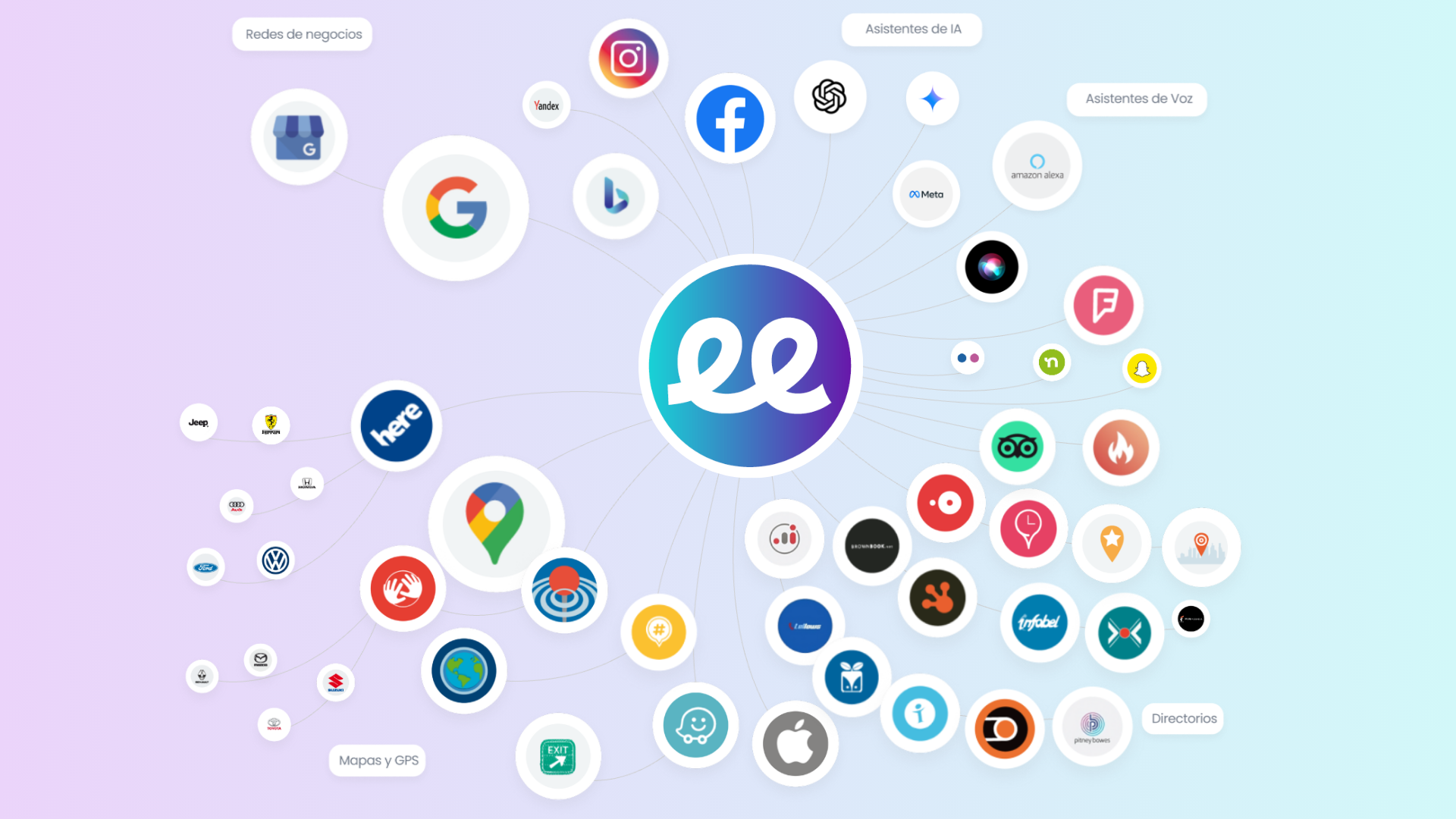 Conecta tu negocio en más de 20 redes digitales además de Google: inteligencias artificiales, mapas, Alexa, Foursquare y mucho más